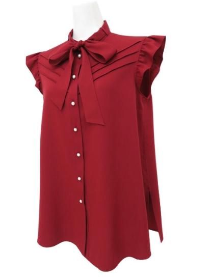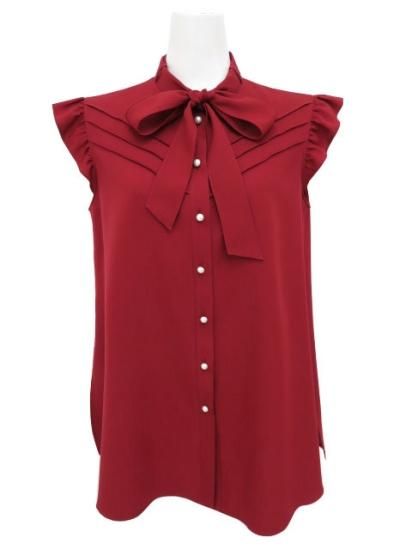 新品同様 Rene/ルネ リボンタイウォッシュブラウス ディープレッド 36 '22年 #マンスリー掲載