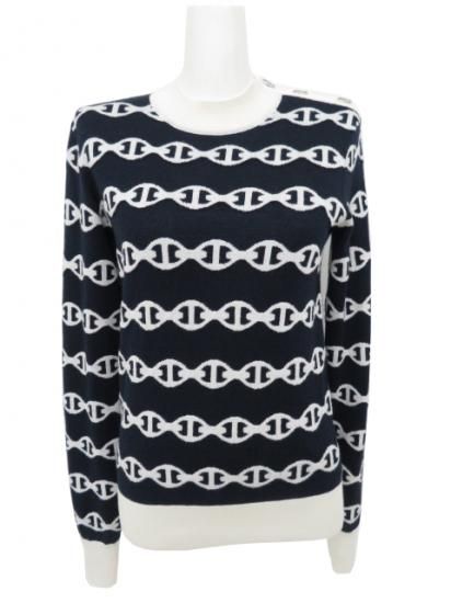 HERMES カシミヤシルクニット シェーヌ・ダンクル ネイビー×ホワイト 34 '25年 A1【中古】