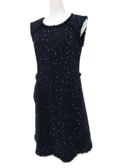 Rene ツイードドレス ネイビー×ブラックMIX 36 '19年 中古A1