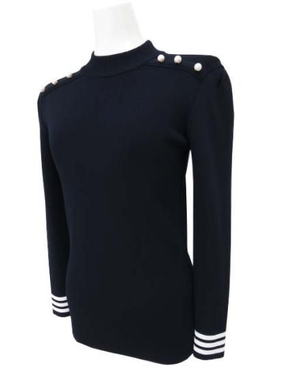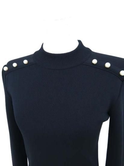BORDERS at BALCONY/ボーダーズアットバルコニー パールトップカットソー ネイビー 36 '20年SS 中古A1