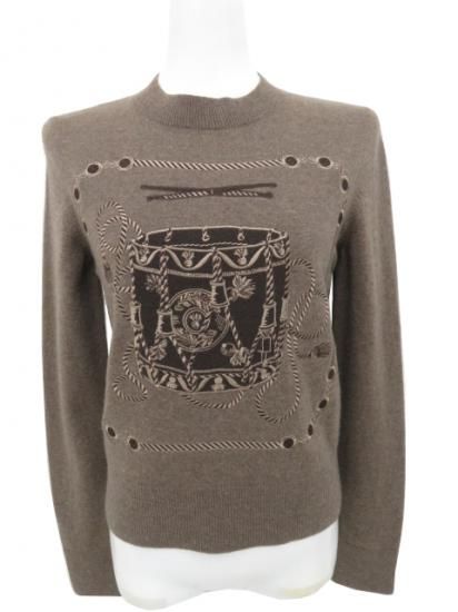 HERMES ウールナイロンニット ブラウン 34 '23年 A1美品【中古】