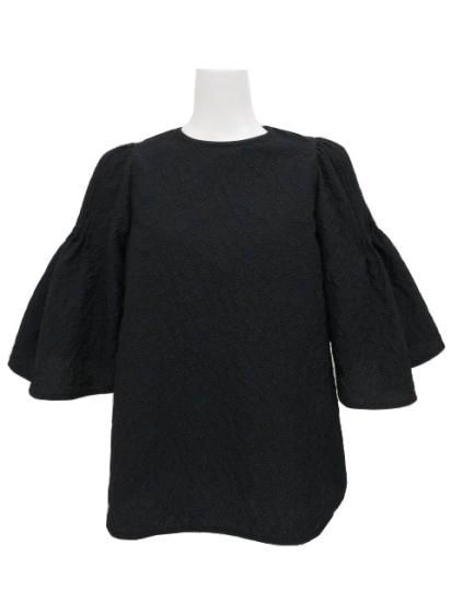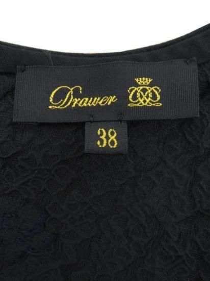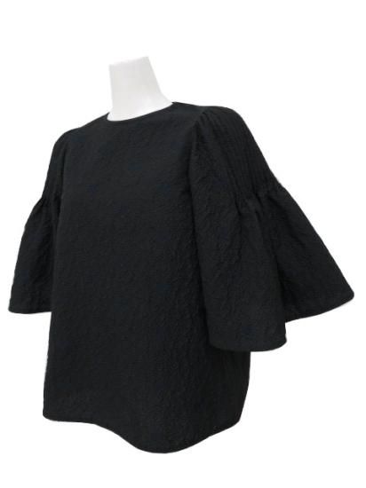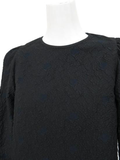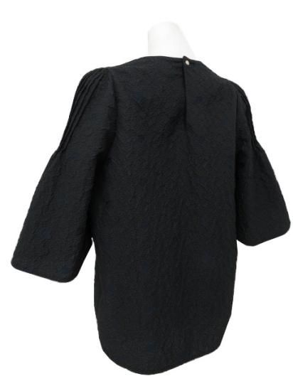 新品同様 Drawer/ドゥロワー フラワージャガードフレアスリーブブラウス ブラック×ネイビー 38 '23年SS 完売品
