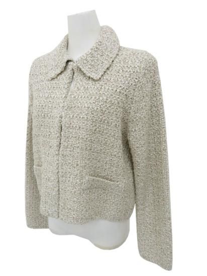 新品同様 FOXEY BOUTIQUE ニットジャケット ノワゼット 42602 ベージュ×ホワイト 40 '22年 #EX掲載