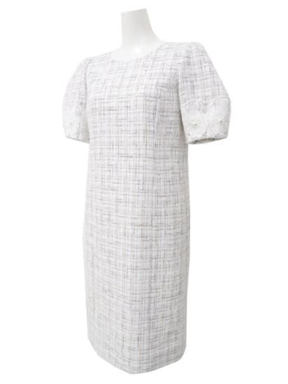 新品同様 Rene フローラルツイードドレス 6326150 ホワイト×ベージュMIX 34 '23年 #マンスリー掲載