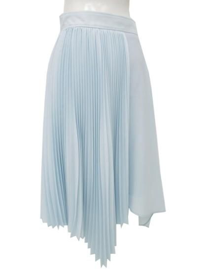 新品同様 FOXEY/ADEAM パームツリープリーテッドアシンメトリックスカート 42797 スキンブルー系 2 '22年