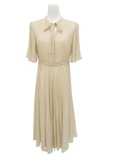 未使用 CELFORD バリエーションプリントプリーツワンピース ベージュ 36 '22年