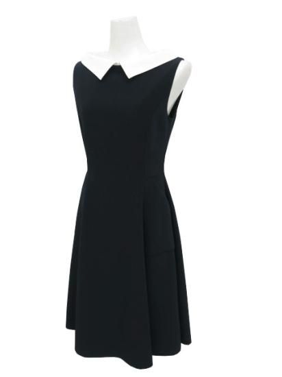 GA;ERIE VIE ギャルリーヴィー ウールミラノリブボックスワンピース ネイビー ’19年 #36 A1【中古】