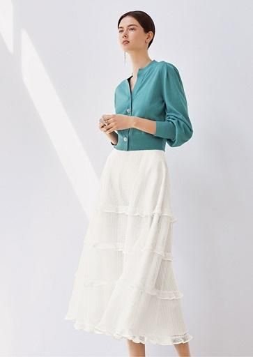 FOXEY NEW YORK スカート イリプスフレアー 36424 ソフィーブルー 40 '19年増産 中古A1美品