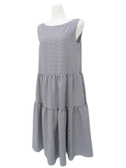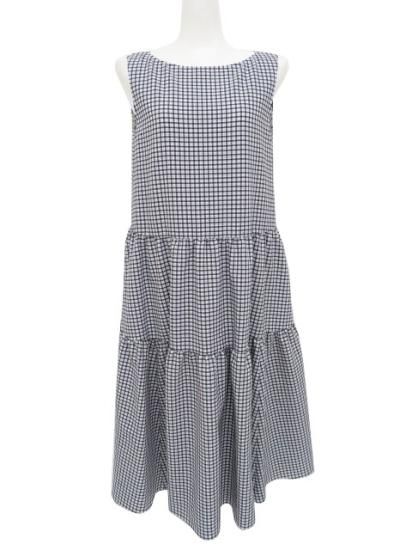 Drawer ポリエステルチェックノースリーブワンピース ベージュ×ブルー系 チェック柄 38 '21年 中古A1美品