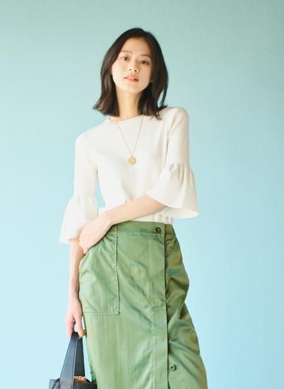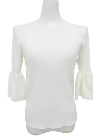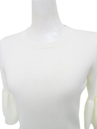 未使用 LOUNIE/ルーニィ フリルスリーブリブニットプルオーバー オフ F