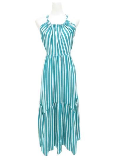 新品同様 MYLAN/マイラン ストライプバックリボンティアードドレス ターコイズ F '22年 完売品