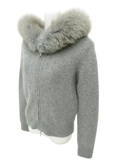 FOXEY BOUTIQUE ニットパーカ パインコーン 【ファー】 38523 グレー 38 '18年 中古美品