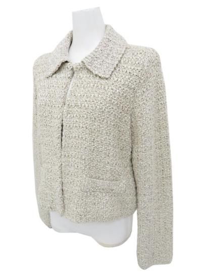 新品同様 FOXEY BOUTIQUE ニットジャケット ノワゼット 42602 ベージュ×ホワイト 42 '22年 #EX掲載