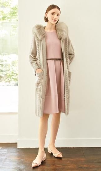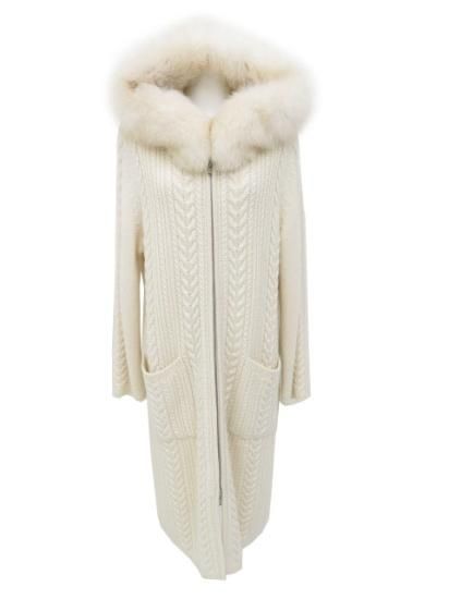 新品同様 FOXEY BOUTIQUE ニットコート ウォルナット 42264 アイボリー 40 '21年 #EX掲載