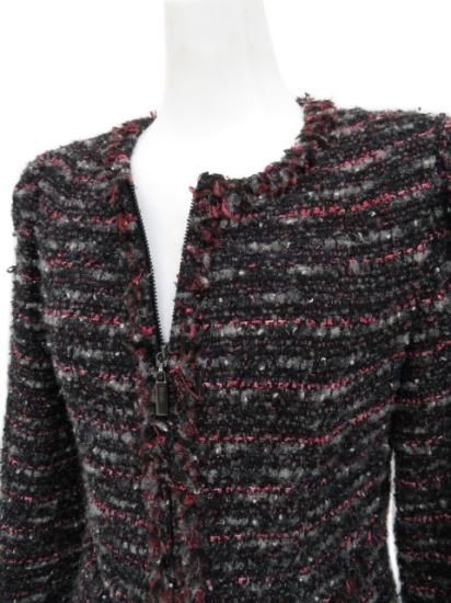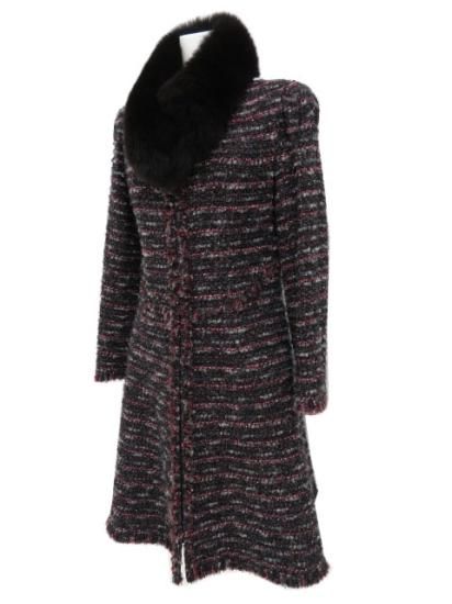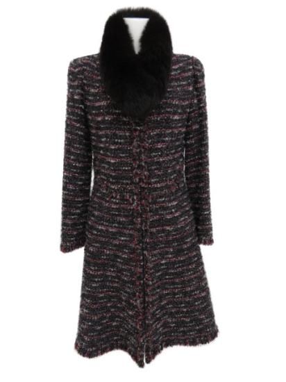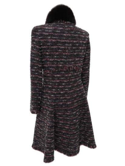 Rene フォックスファーティペット付きツイードコート 【ファー】 ブラック×グレー×レッド系MIX 34 '16年 A1【中古】