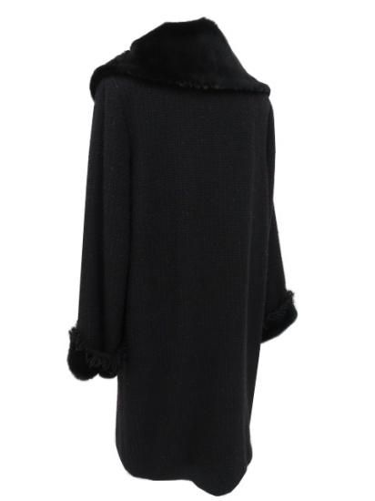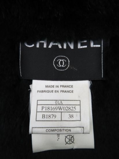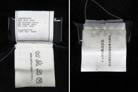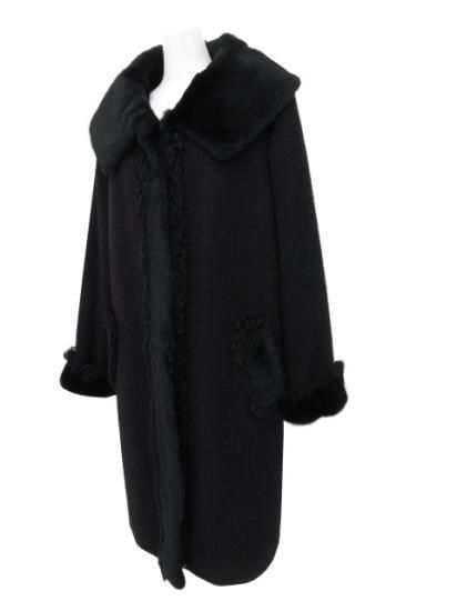 CHANEL ラパンファー×ツイードフリンジコート 【ファー】 ブラック×ボルドー系MIX 38 A1【中古】