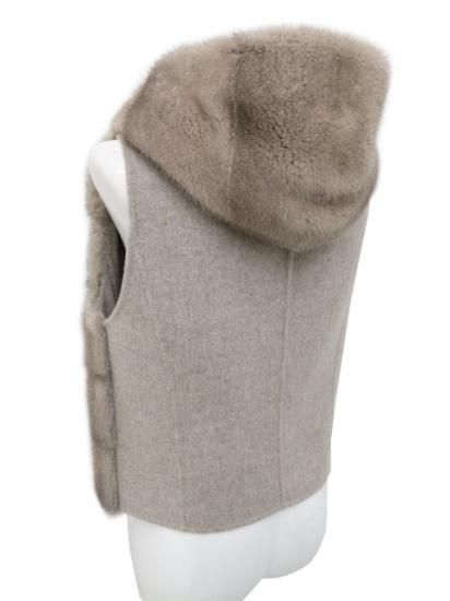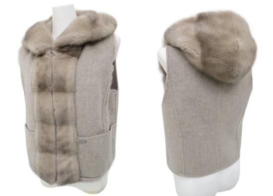 新品同様 FOXEY BOUTIQUE ファーベスト フーディパフ 【ファー】 38303 ライトグレー 40 '19年 【中古】