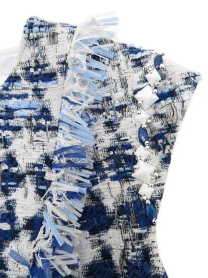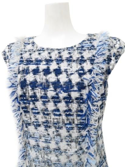 新品同様 Rene ツイードドレス ホワイト×ブルー系MIX #マリア・ケント社製生地 36 '21年
