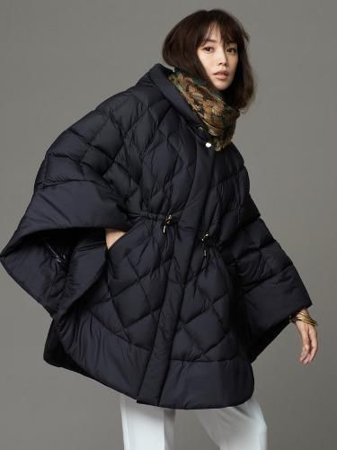 ケープは体型が大きく見えると懸念される方も多くいますが、「ELLIS CAPE」はウエストのドローコードを絞ってシルエットに変化を付けれることと、立体的な構造にする事で、体形カバー力を高めながら、膨らみ過ぎない軽やかな美しいシルエットを叶えます。キルティングステッチにすることで強度と保温性が高まるので、暖かさもキープしてくれます。アウターに迷う厚手のニットにも羽織れるので、コーディネートの幅が広がります。