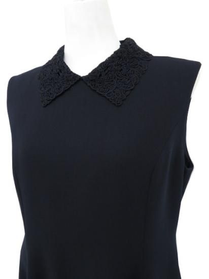コメント さらりとしなやかな着心地で上質感漂うウールBLEND素材。上品なフィット&フレアシルエットにコードレースのつけ襟が華やかなアクセントになったワンピースです。ノーカラーでも着られる2WAY仕様でオンオフ問わず様々なシーンで活躍できます。バックファスナー+襟元スナップボタン1個留め。裏地あり。
