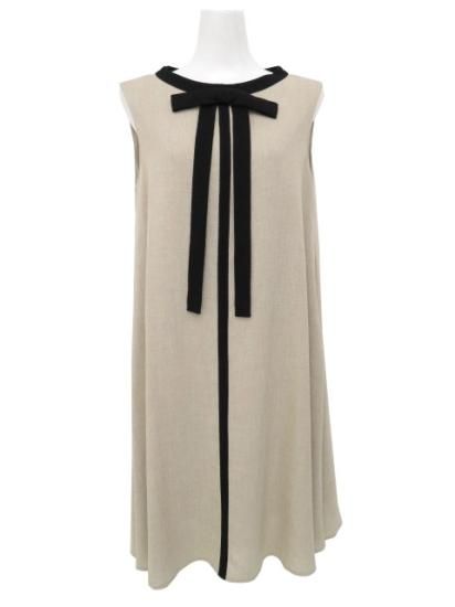 Rene バイカラートリムウォッシュドレス 5236231 シナモンべージュ×ブラック 36 '22年 中古美品