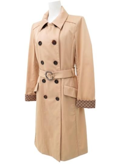 CELINE トレンチコート マカダム柄 ピンクベージュ系 38 A1【中古】