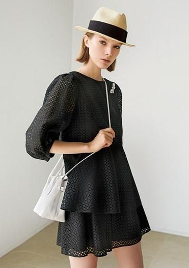FOXEY NEW YORK サマーブラックミニドレス 37196 ネイビー 38 '18年 A1【中古】
