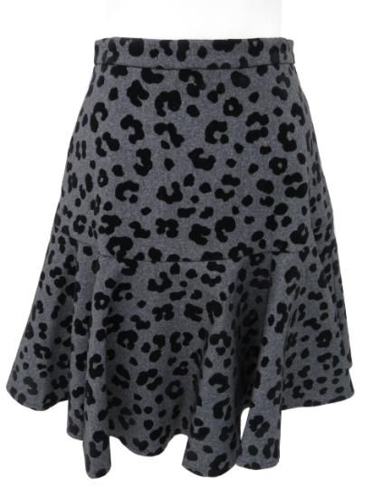 OBLI フロッキーレオパードフレアスカート グレー×ブラック F '24年現行 未使用【中古】