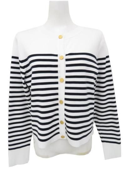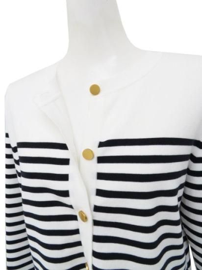 新品同様 FOXEY BOUTIQUE カーディガン リバー 43583 ホワイト×ネイビー 42 '23年 全サイズ完売カラー 【中古】