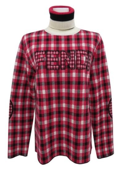 FENDI タートルニット セーター ロゴ入り ピンク×ホワイト×ブラック チェック柄 42 '18年 中古A1
