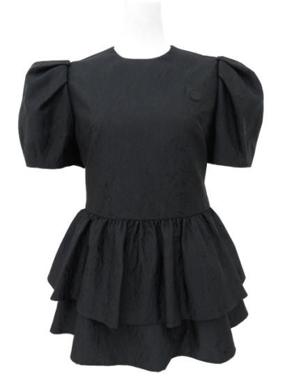 BORDERS at BALCONY ジャガードペプラムトップ ブラック 38 '22年SS A1美品【中古】