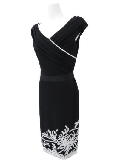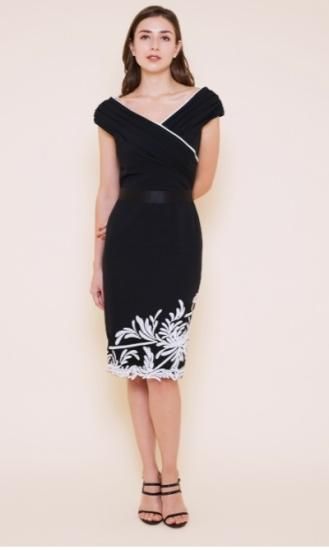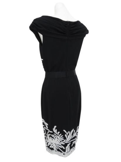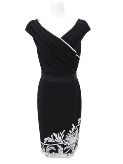 未使用 TADASHI SHOJI カシュクール スパンコール刺繍 タイトドレス ブラック×ホワイト XS '23年オンライン現行品 【中古】