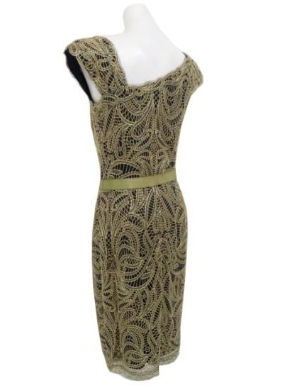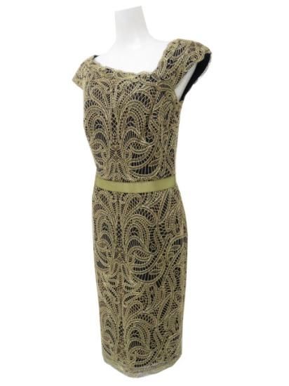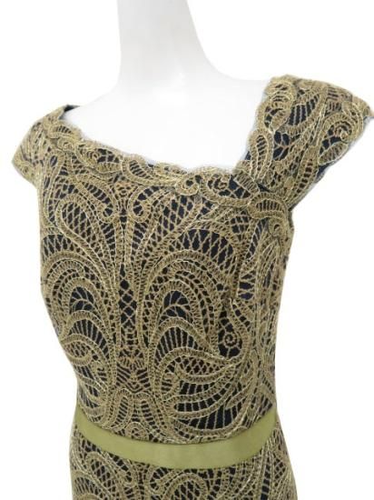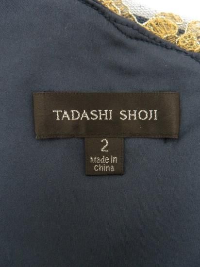 TADASHI SHOJI アシンメトリーネック レースドレス ゴールド×ネイビー 2 未使用【中古】