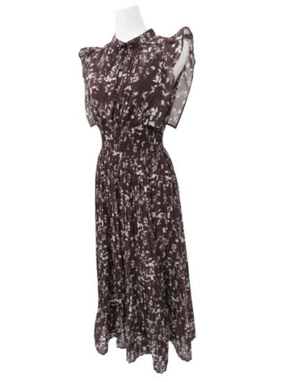 SNIDEL プリントプリーツワンピース ダークブラウン 00 '22年SS 未使用【中古】