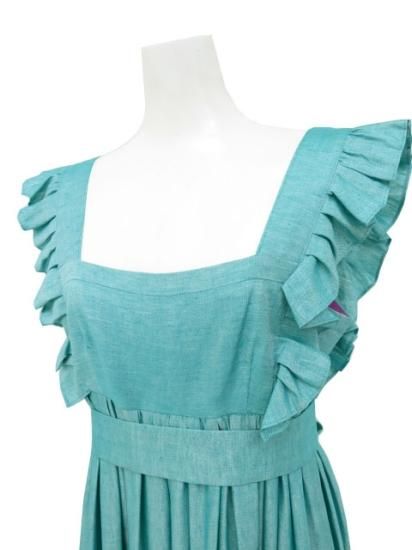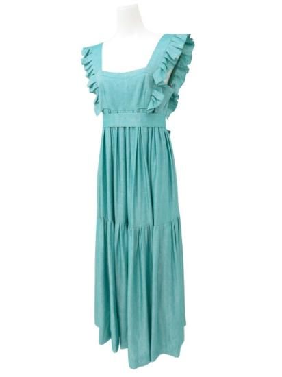 MYLAN バックオープンフリルドショルダードレス ピーコックグリーン F 新品同様【中古】