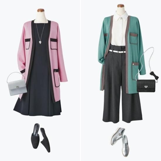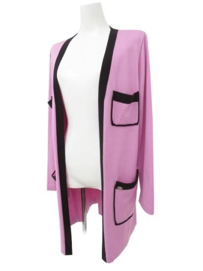 DAISY LIN ロングカーディガン フレンチマダム 06475 ダスティローズ×ブラック F '21年 A1【中古】