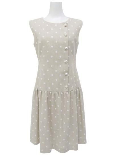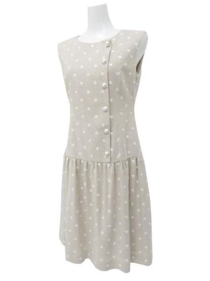 Rene リネンドットドレス ベージュ×ホワイト 34 '20年 A1【中古】