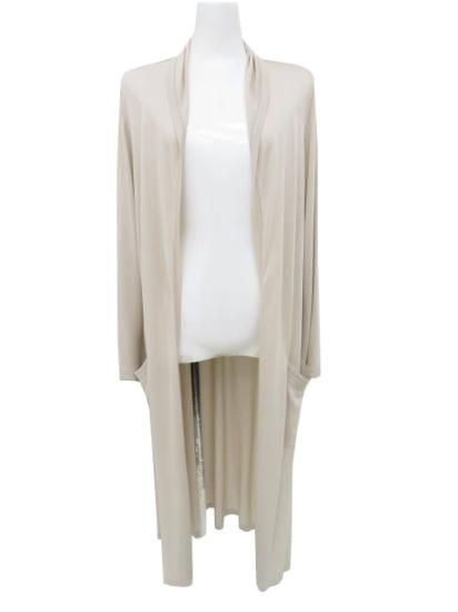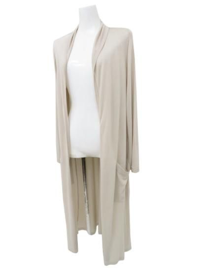 コメント さらりとした清涼感のある肌触りが心地良いレーヨンナイロン素材。ポケット口と袖口に入れた編み柄がアクセントになったロング丈カーディガンです。全体を優しく包み込む大きめの襟がエレガント。薄い編地で軽く、さっと羽織ることができるので幅広いシーンで活躍できます。