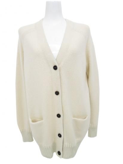 HERMES ニット ロングカーディガン セリエボタン ソルド品 アイボリー系 38 A1【中古】