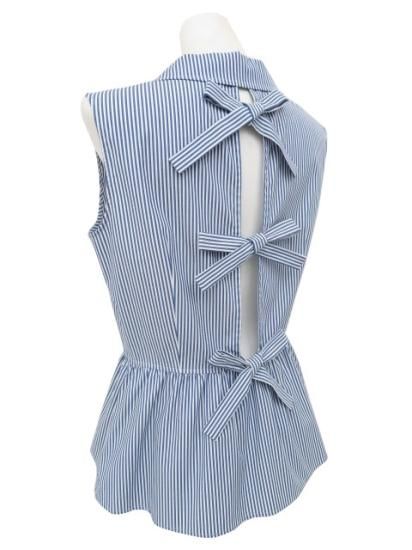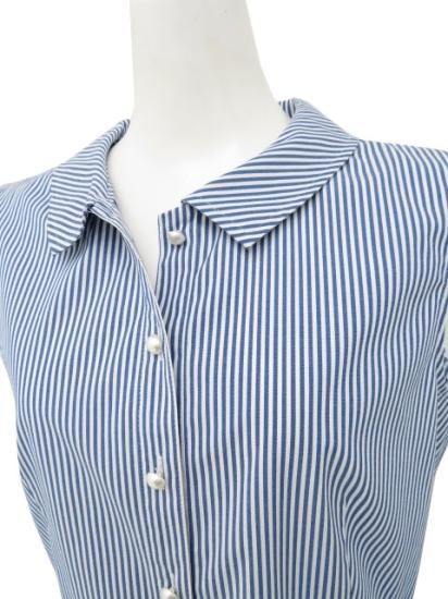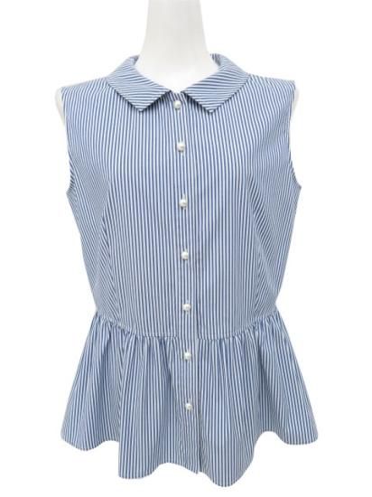 Rene basic ブラウス ブルー×ホワイト 36 '19年 A1美品【中古】