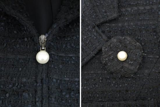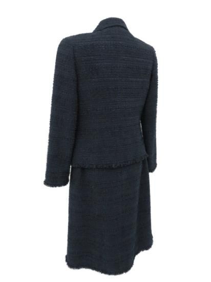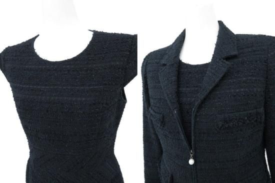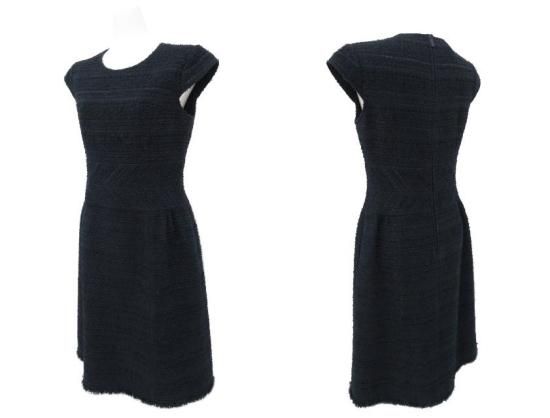 Rene ツイードドレス+ツイードジャケット カメリアブローチ付き ネイビー×ブラック 36 '21年 A1【中古】