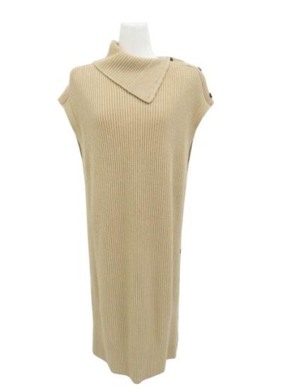 HERMES キャメルニットワンピース セリエボタン ベージュ 36 中古A1