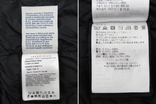 MONCLER ロングダウンジャケット HERMINE ブラック 1 '23年 新品同様【中古】