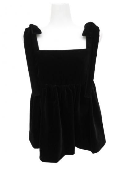 OBLI ベロアリボンキャミトップス ブラック F '24年現行 未使用【中古】