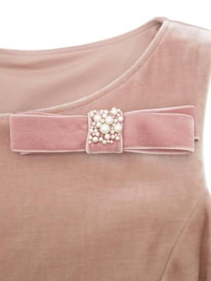 VELOUR NOIR by FOXEY NEW YORK ドレス マンハッタン リボンブローチ付き 43020 ダスティローズ 42 '22年 A1美品【中古】
