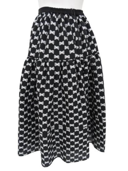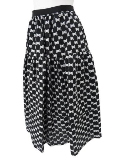 OBLI リボンジャガードスカート ブラック×シルバー #0 '24年 24WACB65-0 A1美 【中古】