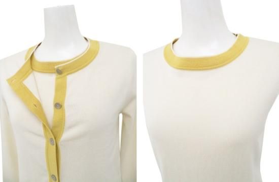 FOXEY BOUTIQUE ニットツイン プリムローズ 42712 アイボリー×ソフトイエロー 38 '22年 A1【中古】