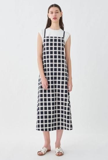 TOMORROWLAND collection ドビータッターチェック ジャンパードレス ライトベージュ×ダークネイビー 34 '24年SS 未使用【中古】