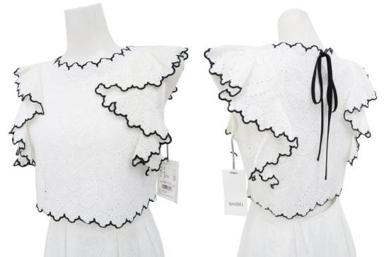 SNIDEL パンチングレースワンピース ホワイト×ブラック 0 '23年 新品同様【中古】