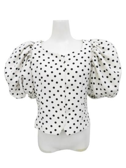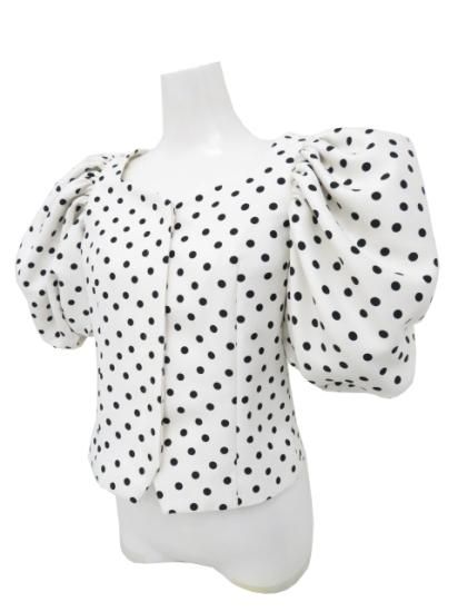 Cygne バルーンギャザーブラウス ホワイト×ブラックドット 0 A1【中古】
